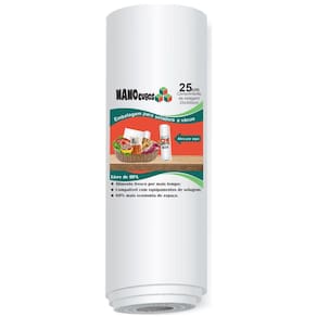 Rolo Nanocubos 25x500cm Sacos Ranhura para Seladora a Vácuo Embalagem 1 rolo Nanocubos 25 cm X 500 cm para seladoras a vácuo. Embalar produtos a vácuo é a melhor forma de mantê-los sempre protegidos por muito mais tempo. Ao embalar alimentos, a validade deles é completamente estendida, pois eles não terão nenhum contato com o ar e serão pouco afetados pela ação do tempo. Você pode embalar tanto alimentos crus como alimentos já preparados para serem consumidos em outro momento. Você economiza muito dinheiro e evita o desperdício Os sacos para vácuo Nanocubos são produzidos com alta tecnologia em Nylon Poli seguindo padrões de qualidade internacional. Possuem 12 micras, 3 barreiras de proteção, sem presença de BPA Não tóxicos e funcionam com equipamentos de embalagens a vácuo. Além de alimentos, é possível utilizá-lo com objetos pessoais, documentos ou utensílios, conservando-os como novos por muito tempo e aumentando sua vida útil.