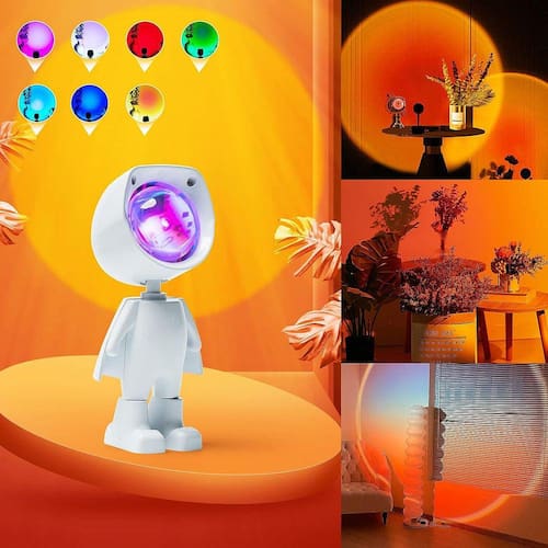 [LÂMPADA DO PÔR DO SOL DE ALTA TECNOLOGIA, MAIS DURÁVEL] -Figura de astronauta robô criativo pode ser como uma decoração de quarto. Feita de materiais ABS de alta qualidade e luz LED energeticamente eficiente, que garante rápida dissipação de calor, a lâmpada de projeção Sunset tem uma qualidade estável e uma vida útil mais longa. Todos os nossos produtos são testados para os mais altos padrões absolutos de qualidade e segurança. [Rotação de 360 graus