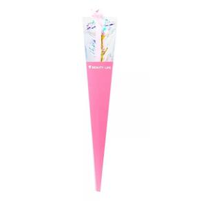 Rosa artificial na cor rosa com 36 x 7 cm de dimensão, envolto de luzes amarelos. Botão de ligar e desligar, ao ligar, pode manter a luz acesa constante ou piscando. Material: plástico; Funcionamento: 3 baterias LR44