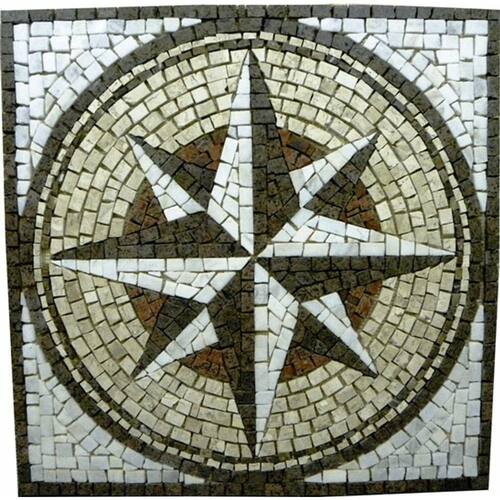 Especificações técnicas do mosaico: Feito com pedras - Mármores e granitos de todo o e importados da Europa e Ásia - para obter todas as cores desejadas em pedras naturais; Vem todo montado sobre tela, só colocar conforme manual de colocação, Resistência e Durabilidade em área interna e externa; Espessura de 10 mm Mesma espessura do porcelanato ou piso cerâmico Liso e agradável para uso diário; Mosaico feito integralmente à mão com técnica do mosaico romano;