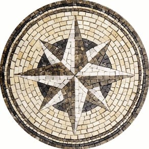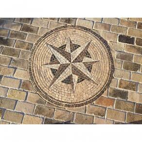 Especificações técnicas do mosaico: Feito com pedras - Mármores e granitos de todo o e importados da Europa e Ásia - para obter todas as cores desejadas em pedras naturais; Vem todo montado sobre tela, só colocar conforme manual de colocação, Resistência e Durabilidade em área interna e externa; Espessura de 10 mm Mesma espessura do porcelanato ou piso cerâmico Liso e agradável para uso diário; Mosaico feito integralmente à mão com técnica do mosaico romano;