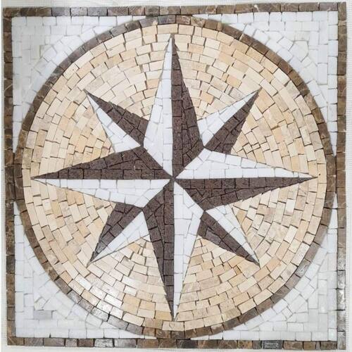 Especificações técnicas do mosaico: Feito com pedras - Mármores e granitos de todo o e importados da Europa e Ásia - para obter todas as cores desejadas em pedras naturais; Vem todo montado sobre tela, só colocar conforme manual de colocação, Resistência e Durabilidade em área interna e externa; Espessura de 10 mm Mesma espessura do porcelanato ou piso cerâmico Liso e agradável para uso diário; Mosaico feito integralmente à mão com técnica do mosaico romano;