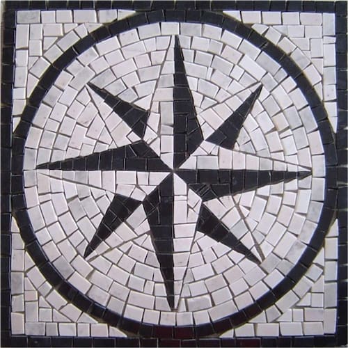Especificações técnicas do mosaico: Feito com pedras - Mármores e granitos de todo o e importados da Europa e Ásia - para obter todas as cores desejadas em pedras naturais; Vem todo montado sobre tela, só colocar conforme manual de colocação, Resistência e Durabilidade em área interna e externa; Espessura de 10 mm Mesma espessura do porcelanato ou piso cerâmico Liso e agradável para uso diário; Mosaico feito integralmente à mão com técnica do mosaico romano;