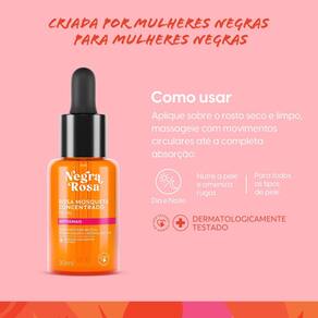 Óleo Rosa Mosqueta Concentrado Facial Negra Rosa O Óleo Facial Rosa Mosqueta Negra Rosa contém 2,5% de Retinol Like que contribui para o aumento da elasticidade e firmeza da pele, reduzindo a aparênci