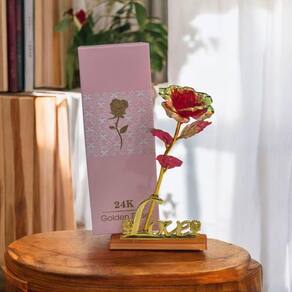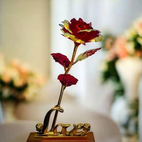 Rosa Vermelha Brilhante Flor Artificial 24k Folha Plástico Na Caixa com Base Love A Rosa Brilhante Flor Artificial da marca Golden Rose é a escolha perfeita para quem busca elegância e sofisticação em qualquer ambiente. Com um formato de vara e um comprimento total de 25 cm, esta flor é ideal para compor arranjos ou para ser utilizada sozinha como um toque especial na decoração.
