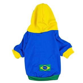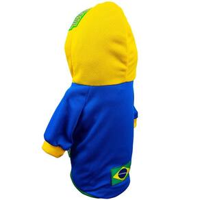 a roupa para pet seleção brasileira de futebol oficial modernpet é muito confortavel feito com tecido dry-fit tecnológica, este tecido possui a capacidade de absorver e transportar a umidade do corpo para fora do tecido e consegue absorver em até 4 vezes mais suor que outros tecidos. O tecido possui uma trama com pequenos furos para ventilação, proporcionando uma temperatua agradável ao seu pet, pode ser utilizado tanto nos dias quentes ou naquele friozinho , além de ter um capuz revestido com tecido branco, possui também apliques com bandeira do brasil personalizados, dando um acabamento unico e especial na peça. Esta linha de roupa modernpet possui as cores atemporal azul e amarelo canarinho , com tema da seleção brasileira de futebol, praticidade na hora de vestir e caimento perfeito, promovendo bem estar, conforto para seu pet e ousadia para os nossos olhos. Disponível em até 5 tamanhos