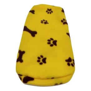 Roupa estilo capa em tecido soft; Cor: amarelo com patinhas marrom Tamanho: G Medidas aproximadas: 37 cm de comprimento, 50 cm de circunferência torax, 30 cm de circunferência pescoço. Proteger seu Pet nos dias frios. Marca: Nica pet