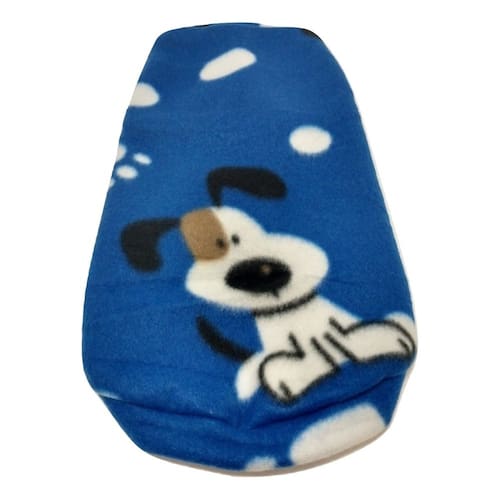 Roupa estilo capa em tecido soft; Cor: azul com estampa de cachorrinho. Tamanho: M Medidas aproximadas: 34 cm de comprimento, 44 cm de circunferência torax, 27cm de circunferência pescoço. Proteger seu Pet nos dias frios. Marca: Nica pet Ean: 7435276534608