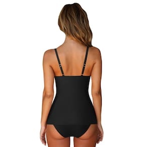 SUUKSESS Tanquíni feminino com controle de barriga, push up, nó frontal, Preto
