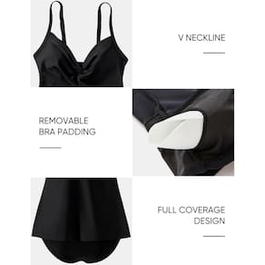 - Conjunto de tanquíni de duas peças com controle de barriga: bainha solta solta para controle de barriga, decote V moderno com nó frontal