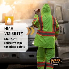 Pioneer Hi Vis Roupa de chuva leve à prova d'água - Equipamento de chuva refletivo para trabalho para homens e mulheres - Fato de chuva impermeável HI VIS – A jaqueta de chuva leve e segura Pioneer mantém você seco e seguro em condições úmidas e escuras. Ideal para trabalho rodoviário, socorristas, construção, transporte, serviços públicos - À prova d'água – Feito de PVC 100% poliéster impermeável, este traje de chuva leve e confortável tem fita adesiva e selada a quente para manter você seco - Jaqueta de chuva – Aberturas traseiras, bainha ajustável, 2 bolsos frontais grandes; o capuz se dobra e fecha na gola, zíper frontal completo, cordão com bainha articulada - Calças de chuva – As calças de chuva têm suspensórios elásticos pretos de alta qualidade com fivelas de plástico não corrosivo, bainhas de encaixe para caber em botas confortáveis. - Fique seguro – O traje de chuva tem fita refletiva StarTech para visibilidade extra do refletor em todas as condições. Atende aos padrões ANSI 107-20 Classe 1 Tipo O e CSA Z96-22 Classe 1
