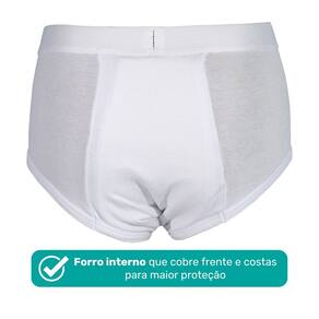 Seu forro interno cobre toda a parte da frente e de trás, proporcionando maior proteção contra vazamentos e sensação de segurança.