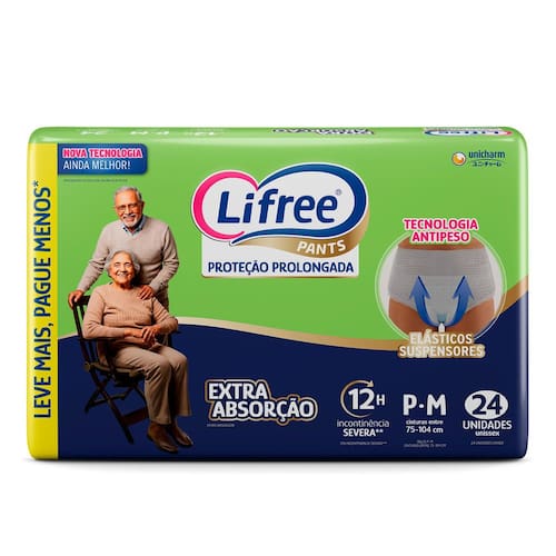 Roupa Íntima Descartável Lifree Pants P-M (24 Unidades) - Incontinência Severa, Extra Absorção e 12h de Proteção Roupa Íntima Lifree Pants Proteção Prolongada: Segurança e Extra Absorção por 12 Horas