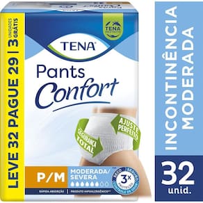 TENA Pants Confort é uma roupa íntima descartável e unissex de rápida absorção, proporcionando ao usuário ativo facilidade de uso, discrição e segurança.