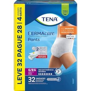 Benefícios e Diferenciais: Indicação: Incontinência urinária severa uso diurno e noturno Canais de absorção profunda: absorção rápida e eficaz, mantendo a pele seca Tecnologia antivazamento: barreiras protetoras e elásticos duplos nas pernas Controle de odores: neutraliza cheiros indesejáveis Material respirável e suave ao toque: conforto prolongado e proteção da pele Elásticos na cintura e pernas: ajuste anatômico e seguro Costuras laterais removíveis: facilitam a retirada do produto Veste como uma calcinha ou cueca descartável: mais discrição e liberdade de movimento A TENA Pants Dermacare é ideal para quem busca uma solução prática, confortável e eficaz para o dia a dia. Mais proteção, mais cuidado com a pele, mais qualidade de vida.