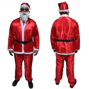 1 Roupa De papai Noel - 5 Peças: Gorro, Barba, Cinto, Calça e Paletó