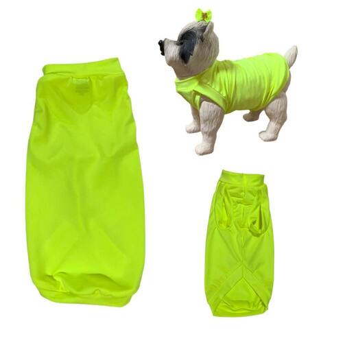 - camiseta cor amarelo neon vibrante; - roupa de malha fina, tecido mais leve e macio, como roupas de acadêmia; - ótima opção para o verão e para deixar seu pet estiloso e confortável no calor; - roupa com costuras triplas com um ótimo acabamento; - para cães e gatos de médio a grande porte;