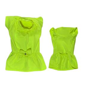 - vestido confeccionado no tecido suplex; - tecido mais leve e super macio, como roupas de academias; - super confortável uma ótima opção para o calor; - recomendados para cães e gatos de pequeno porte; - com um laço no vestidinho; - cor: amarelo neon;