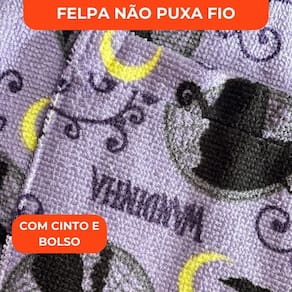 O roupão aveludado da coleção Wandinha traz em sua estampa o incrível e misterioso universo da icônica personagem. Seu tecido é super macio, aconchegante a apresenta o verso felpudo para uma absorção ainda melhor. Quando a hora do banho se transforma em uma aventura, a alegria e conforto das crianças são mais que garantidos. É a magia do Jeito Lepper entrando na rotina dos pequenos.