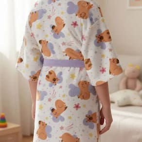 O Roupão Felpudo Infantil Quimono Capivara Lepper traz conforto, praticidade e muita diversão para a rotina das crianças. Com estampa alegre e modelagem tipo quimono, ele veste do tamanho 2 ao 7, acompanhando o crescimento dos pequenos com excelente durabilidade. Produzido com 95% algodão e 5% poliéster, oferece toque macio, ótima absorção e secagem rápida. Além disso, não puxa fio, é leve, fácil de lavar e perfeito para usar após o banho, piscina ou praia.