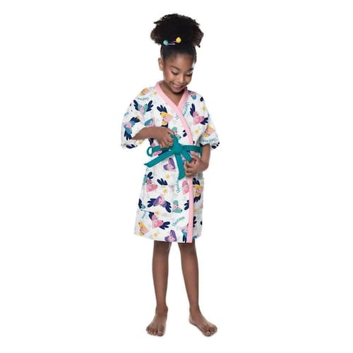 Roupao Felpudo Infantil Quimono Estampado Faz-de-Conta P O roupão felpudo da coleção Faz de Conta estampa a magia e encanto dos unicórnios, entre corações, coroas e elementos lúdicos. Seu tecido apresenta a exclusiva qualidade da felpa que não desfia, possui ótima absorção e não perde a intensidade das cores, além da peça contar com a pala e cinto aveludados conferindo um aconchego ainda maior. O roupão traz o jeito Lepper de facilitar e divertir o pós-banho ou piscina das crianças.