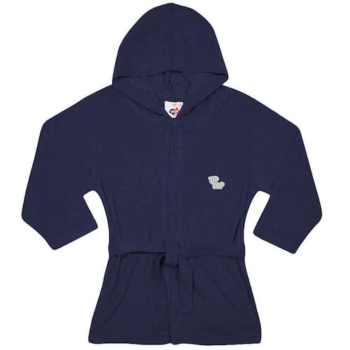 Ideal para praia, piscina e natação, o roupão infantil marinho Tip Top possui capuz e é atoalhado. Tecido leve, facilita a secagem, seca e protege sem pesar.