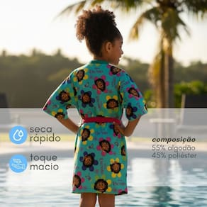 -Contém 1 roupão; -Composição: 55% algodão | 45% poliéster -Disponível nos tamanhos: P (4 a 6 anos) | M (6 a 8 anos) | G (8 a 10 anos) Marca: Lepper