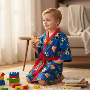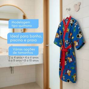 Com modelagem tipo quimono e disponível em vários tamanhos infantis, é a escolha perfeita para unir conforto, diversão e estilo, deixando a rotina dos pequenos ainda mais alegre.