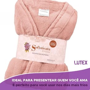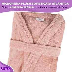 Roupão microfibra plush sofisticata premium atlântica quimono com faixa antipilling antialérgico Tamanho: p Cor: rosa retrô O roupão de microfibra plush sofisticata da atlântica possui toque macio e aconchegante, modelagem quimono ideal para estações mais frias. Confeccionado em poliéster, possui dois bolsos, acabamento especial e faixa com 2 metros de comprimento.