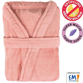Roupão Plush Microfibra Kimono Unissex Feminino e Masculino Atlântica - Emcompre - G - Rosa Claro