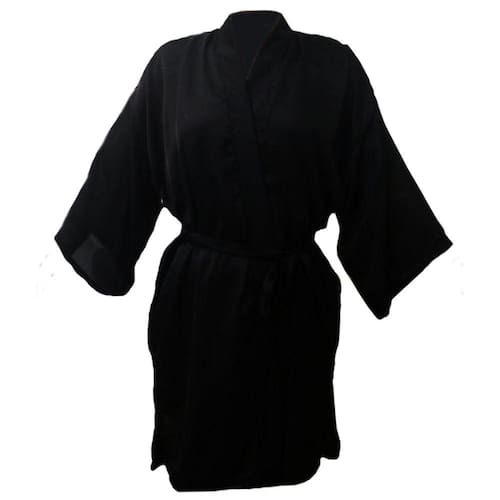 Roupão Quimono Preto Tamanho MRoupão quimono preto, tamanho médio com modelagem ampla possui mangas 3/4 e fechamento por amarração. Super confortável e macia para o seu pós banho.Composição: 100% poliesterDimensão: tamanho médio al. 96cm ombro. 54cm circunferência. 1,30 mt larg. 66cm Marca: For Import