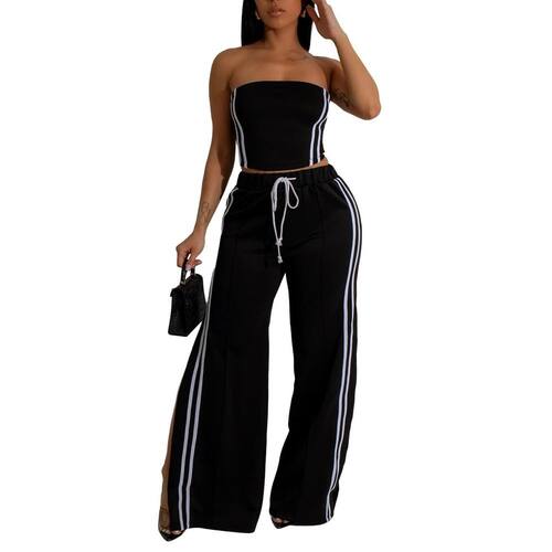 Conjunto casual combinando estilo: moderno, fofo, sexy, - O conjunto de duas peças para mulheres é feito de tecido amigo da pele, macio, ótimo elástico e confortável. Roupas sexy de duas peças para mulheres proporcionam uma experiência de uso confortável - O conjunto de duas peças para mulheres saindo apresenta top tubinho agitado, sem alças, sem mangas, cintura elástica, calça larga de cintura alta com lateral de lodo. Macacões elegantes criam estilo casual e fazem você parecer chique no verão quente - Conjunto de duas peças sexy, roupas de brunch para mulheres, conjuntos de duas peças para mulheres, roupas de férias para mulheres, roupas de aeroporto para mulheres, roupas de verão de 2 peças para mulheres, roupas de festa para mulheres, conjuntos de calças femininas de 2 peças, roupas de aniversário para mulheres - Ocasião: Conjunto de duas peças para mulheres no verão, perfeito para festa de verão na praia, clube, encontro, rua, sair, aeroporto, férias, diariamente, etc. Combinando com saltos ou tênis, conjuntos fofos para mulheres fazem você parecer casual e sexy - Tamanho e cor: vermelho/preto/verde. P/M/G/GG/2GG. Consulte a tabela de tamanhos antes de fazer o seu pedido
