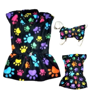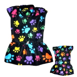 - vestido para cachorro em soft; - ideal para todas as ocasiões, seu pet vai amar; - extremamente gostoso, macio, leve mas muito quentinho; - lavável em maquina e a mão. - vestido na cor: preto colorido; - laço na cor do vestido; Medidas - tamanho gg: Medidas aproximadas- pescoço: 32 cm de circunferência; abdomen / toráx: 50 cm de circunferência; comprimento: 46 cm. Marca: Nicapet Ean: 7896625408504