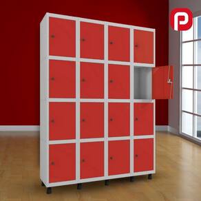 - Material dos pés: pvc - Material principal: aço - Quantidade de portas: 16 portas - Não possui rodízio - Possui pés reguláveis - Tipo de puxador da porta: embutido - Capacidade por prateleira/vão: 15kg (bem distribuídos) - Corpo em chapa #26 (0,45mm) - Tampo em chapa #24 (0,60mm) Ean: 7890011203261