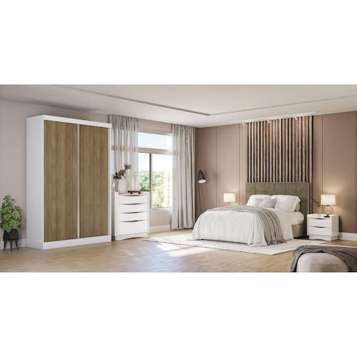* A cor das portas DEVE ser escolhida no momento da montagem. Acabamento da Prateleira: Pintura Escala de Brilho da Prateleira: Fosco Possui Cabideiros: 01 Acabamento da Gaveta: Pintura Possui Organizador de Gaveta: Não Acabamento da Porta: Pintura Escala de Brilho da Porta: Fosco Material do Puxador da Porta: Metal Ambiente Principal: Quarto codigo_ean: 7909875550982 Complexidade da Montagem: Média: pode ser montado por mais de uma pessoa e/ou necessite de maior conhecimento para montagem Cor: Branco/Nogueira Cor do Produto: Branco/Nogueira Cor Flex: Portas reversíveis, podem ser montadas nos dois lados, nas cores Branco/Nogueira Cor Interna: Branco/ Nogueira Escala de Brilho: Fosco Gaveta com Chave: Não Guarda-Roupa Suporta Até (kg): 50 kg Itens Inclusos: 1 Guarda-Roupa, Kit Ferragens e Manual de Montagem Linha ou Coleção: DORMITORIO SLIDING Manual de Montagem e Instalação: https://product-hub-prd.madeiramadeira.com.br/879493/documents/b3133814-7c1c-485d-96b6-9439da9323991667411n571.pdf Material da Gaveta: MDP Material da Porta: MDP Material da Prateleira: MDP Material dos Pés: MDP Material Principal: MDP modular: Não Necessita Montagem: Sim Origem do Produto: Nacional Peso: 105,97 kg Peso Máximo por Gaveta: 6 kg Peso Máximo por Prateleira: 7 kg Possui Calceiros: Não Possui Espelho: Não Possui Pés: Não Possui Portas: Sim Possui Prateleiras: Sim Produto Montado: Sim Recomendações de Uso, Manutenção e Limpeza: Use um pano limpo e ligeiramente umedecido em água ou álcool (recomendamos álcool etílico hidratado). Logo após, seque a superfície com um pano seco e macio. Em grandes superfícies limpe pequenas áreas de cada vez, trabalhando de baixo para cima. Sapatas Niveladoras: Não Sistema de Montagem: Parafuso Philips e Minifix Tipo de Corrediça da Gaveta: Metálica Simples Tipo de Dobradiça/Corrediça da Porta: Metálica Tipo de Gaveta: Interna Tipo de Guarda-Roupa: Solteiro Tipo de Puxador da Gaveta: Não Possui Tipo de Puxador da Porta: Externo