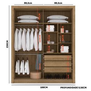 Roupeiro 2 Portas de Correr e 3 Gavetas Dubai - Nature / Camarim - Vila Rica - Marrom