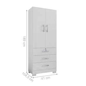 Requer montagem: Sim | Inclui manual de montagem: Sim | Quantidade de caixas de embalagem: 1 | Comprimento: 41 | Profundidade: 41 | Altura: 189 | Largura: 76 | COR PREDOMINANTE: Branco | COMPRIMENTO DO PRODUTO (CM): 41 | DESCRIÇÃO DO TAMANHO: 189x76x41 cm | ALTURA DO PRODUTO (CM): 189 | MATERIAL PRINCIPAL: MDP | COMPRIMENTO PRODUTO COM EMBALAGEM (CM): 187 | ALTURA DO PRODUTO COM EMBALAGEM (CM): 120 | POSSUI ESPELHOS: Não | INSTRUÇÕES/CUIDADOS: Limpar com pano macio e seco, não utilizar produtos abrasivos | PESO DO PRODUTO (KG): 42 | QUANTIDADE DE PORTAS: 2 | TIPO DE GUARDA ROUPA: Solteiro | LARGURA PRODUTO COM EMBALAGEM (CM): 42 | PESO PRODUTO COM EMBALAGEM (KG): 43 | MATERIAL PARA FILTRO: MDP | ESTADO DE ORIGEM: PR | GARANTIA DO FABRICANTE: 3 | PRODUTO: Guarda Roupa | ESTILO: Solteiro | QUANTIDADES DE CAIXAS DE EMBALAGEM: 1 | PRODUTO PRECISA DE MONTAGEM?: Sugerimos a contratação de um montador para a montagem do produto. Não nos responsabilizamos por causadas no ato da montagem. | CORES DO PRODUTO (FILTRO DE CORES): Branco | CONTEÚDO DA EMBALAGEM: 1 Guarda Roupa | QUANTIDADE DE GAVETAS: 3 | LARGURA DO PRODUTO (CM): 76