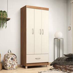 Produzido em MDP. Acompanha cabideiros em madeira, puxadores cromados e pés em PVC