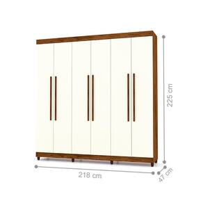 Produzido em MDP, 6 Portas, 2 Gavetas internas com corrediças metálicas., Cabideiro e calceiro em alumínio, Pés de madeira opcional na montagem, Puxadores em MDF com design moderno