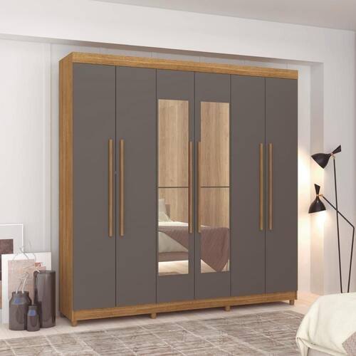 Produzido em MDP, o Guarda Roupa conta com 6 portas, 2 Gavetas internas com corrediças metálicas, Cabideiro e calceiro em alumínio, Pés de madeira opcional na montagem, puxadores em MDF com design moderno.