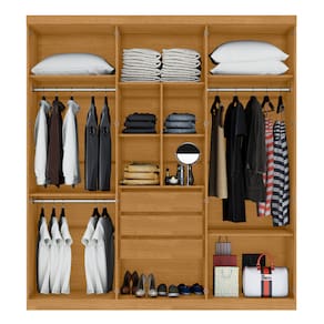 Feito em MDP 15mm.Possui 3 gavetas com corrediças telescópicas, 6 Portas , 6 prateleiras e 3 cabideiro.