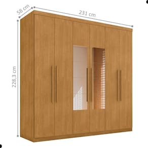 Requer montagem: Sim | Inclui manual de montagem: Sim | Quantidade de caixas de embalagem: 7 | Comprimento: 58 | Profundidade: 58 | Altura: 228 | Largura: 231 | COMPRIMENTO DO PRODUTO (CM): 58 | LARGURA DO PRODUTO (CM): 231 | CORES DO PRODUTO (FILTRO DE CORES): Naturalle | LARGURA PRODUTO COM EMBALAGEM (CM): 60 | ESTILO: Casal | GARANTIA DO FABRICANTE: 3 | QUANTIDADES DE CAIXAS DE EMBALAGEM: 7 | QUANTIDADE DE GAVETAS: 4 | CONTEÚDO DA EMBALAGEM: 1 Guarda Roupa e 1 Espelho | TIPO DE GUARDA ROUPA: Casal | MATERIAL PARA FILTRO: MDF | PESO PRODUTO COM EMBALAGEM (KG): 201 | ALTURA DO PRODUTO COM EMBALAGEM (CM): 101 | POSSUI ESPELHOS: Sim | PESO DO PRODUTO (KG): 198 | INSTRUÇÕES/CUIDADOS: Limpar com pano macio e seco, não utilizar produtos abrasivos | PRODUTO PRECISA DE MONTAGEM?: Sugerimos a contratação de um montador para a montagem do produto. Não nos responsabilizamos por causadas no ato da montagem. | PRODUTO: Guarda Roupa | MATERIAL PRINCIPAL: MDF | ALTURA DO PRODUTO (CM): 228 | ESTADO DE ORIGEM: PR | COR PREDOMINANTE: Marrom | DESCRIÇÃO DO TAMANHO: 228x231x58 cm | QUANTIDADE DE PORTAS: 6 | COMPRIMENTO PRODUTO COM EMBALAGEM (CM): 218