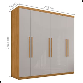 Feito em MDF 15mm.Possui 4 gavetas com corrediças telescópicas, 6 Portas , 7 prateleiras e 5 cabideiro.