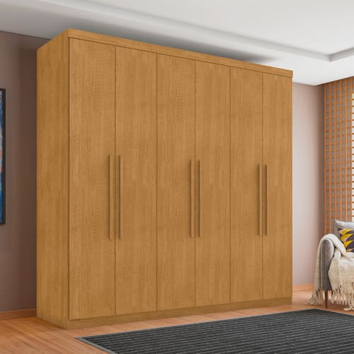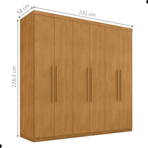 Feito em MDF 15mm.Possui 4 gavetas com corrediças telescópicas, 6 Portas , 7 prateleiras e 5 cabideiro.