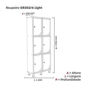 6 Portas: Amplo espaço interno com 6 grandes compartimentos, ideal para quem precisa de um roupeiro funcional e com grande capacidade de armazenamento.