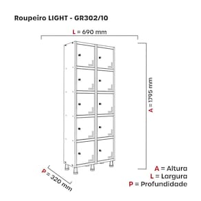 Roupeiro Aço Light 2v 10 Portas Gr302/10 Cinza/Azul