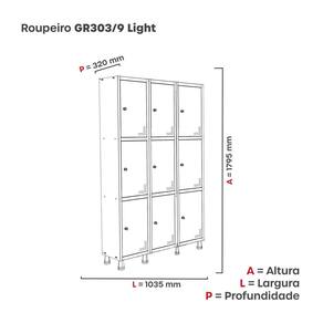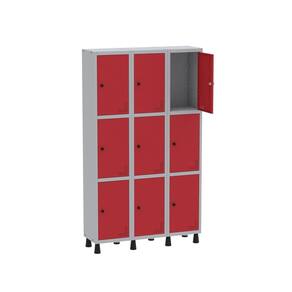 Roupeiro Aço Light 3v 09 Portas Gr303/9 Cinza/Vermelho