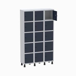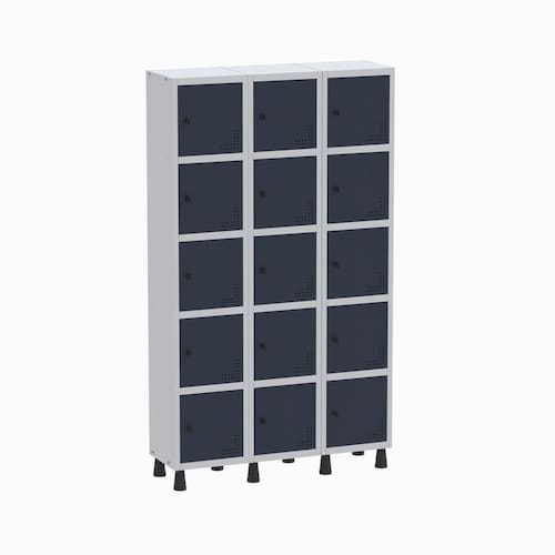 Armário Roupeiro de Aço totalmente montável, dispensa a utilização de parafusos, estrutura em chapas #24 e #26 (0,60mm e 0,45mm) conta com uma porta com estampos circulares em formação triangular para ventilação, sistema de fechamento de varão de 3 pontos, através de pitão para cadeado. Em conformidade com as normas NR17. Acabamento da Porta: Pintura Ambiente Principal: Escritório Complexidade da Montagem: Média: pode ser montado por mais de uma pessoa e/ou necessite de maior conhecimento para montagem Cor: Cinza/Azul Cor do Produto: Cinza/Azul Cor Interna: Cinza/Azul Delrei Escala de Brilho: Semi-Fosco Escala de Brilho da Porta: Semi-Brilho Itens Inclusos: 1 Armário,Kit de ferragens e Manual de Montagem. Linha ou Coleção: Aço Manual de Montagem e Instalação: https://product-hub-prd.madeiramadeira.com.br/932229/documents/74ca99ee-c975-4b97-b719-d4cb8f2695280131Roupeiro20Linha20Light.pdf Material da Porta: Aço Material do Puxador da Porta: Poliestireno Material dos Pés: Polipropileno Material Principal: Aço Necessita Montagem: Sim Origem do Produto: Nacional Pés Reguláveis: Sim Peso: 30,6837 kg Possui Espelho: Não Possui Pés: 04 Possui Portas: 10 Possui Prateleiras: Não Recomendações de Uso, Manutenção e Limpeza: Utilizar um pano levemente umedecido com água, para finalizar utilizar um pano seco. Sapatas Niveladoras: Sim Sistema de Montagem: Parafuso Suporta Até (kg): 20 kg Tipo de Dobradiça/Corrediça da Porta: Aço Tipo de Puxador da Porta: Externo