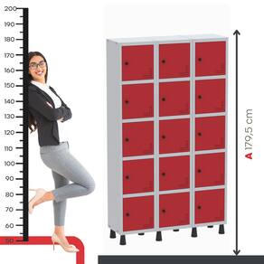 Roupeiro de Aço Pandin Linha Light 15 Portas Cinza/Vermelho -