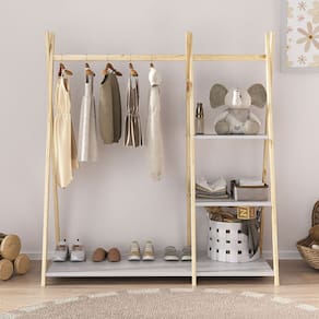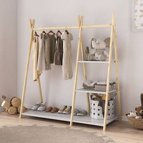 O Roupeiro Bebê Arara Montessoriana Madeira Natural Branco Lotte foi pensado para estimular a independência desde cedo. Com estrutura em madeira maciça e design montessori, traz barra para cabides na altura da criança e prateleiras laterais perfeitas para brinquedos, sapatos ou acessórios. Funcional e encantador, ele é ideal para manter tudo em ordem de forma acessível, prática e cheia de charme.